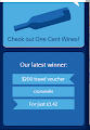 Về phía người mua, người mua có thể mua được máy chụp hình với giá $50. Người mua có thể hí hửng vì mua được món hàng với giá hời. Nhưng trong thực tế người mua có thể đã quên họ phải ra giá đến 200 lần (mỗi lần nhích lên một xu). Qua 200 lần ra giá đó, người mua phải trả cho chủ trang web 50 xu mỗi lần. | ![]() Một phần trên trang web "One Cent Flights" |